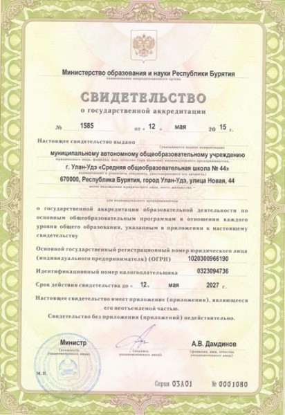 Свидетельство о государственной аккредитации